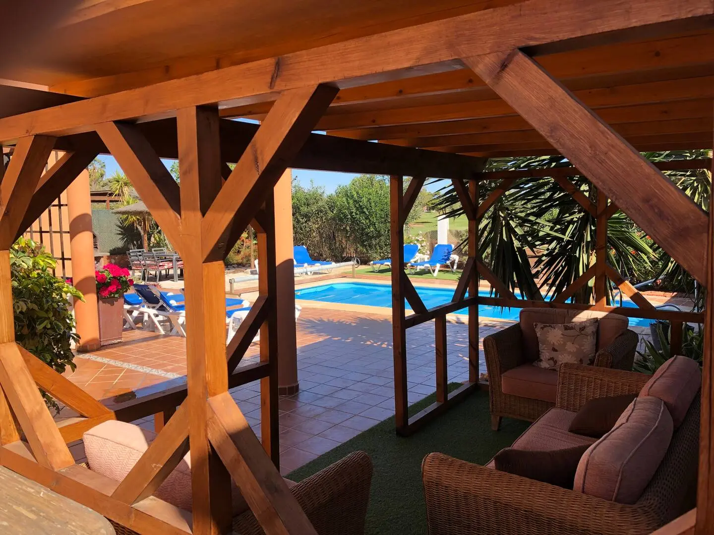 Comfortable Amenities: The villa includes air-conditioning, a fully equipped kitchen, and a washing machine. Additional amenities include a bar, minimarket, and barbecue facilities, catering to all guest needs.
