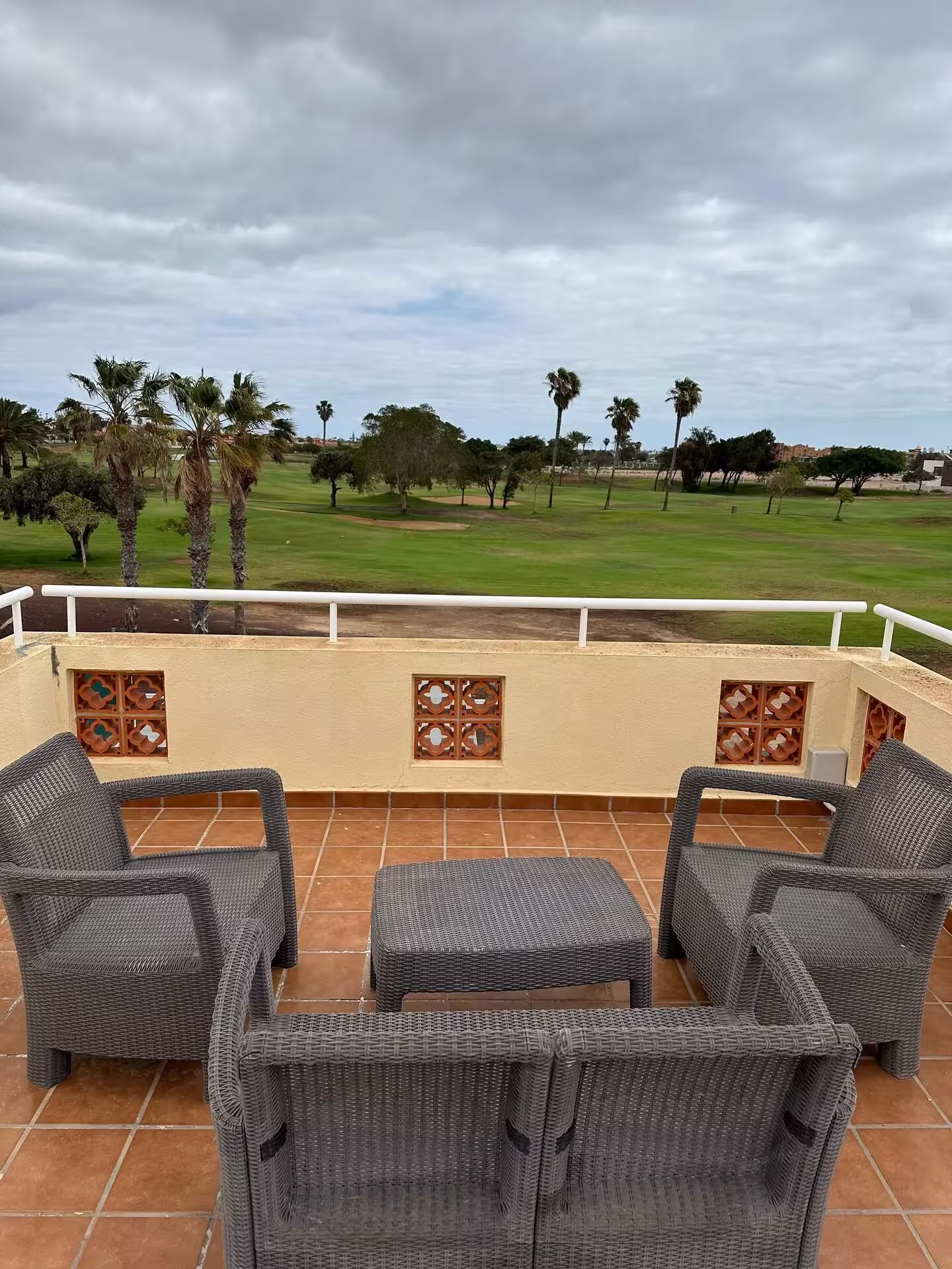 The terrace and patio areas again give the feeling of space and look directly over the 5th green of the Fuerteventura Golf Course. Two ‘Al Fresco’ seating areas and plenty of sunbathing space. Two fixed sunbathing parasols have been positioned to allow a shady spot.