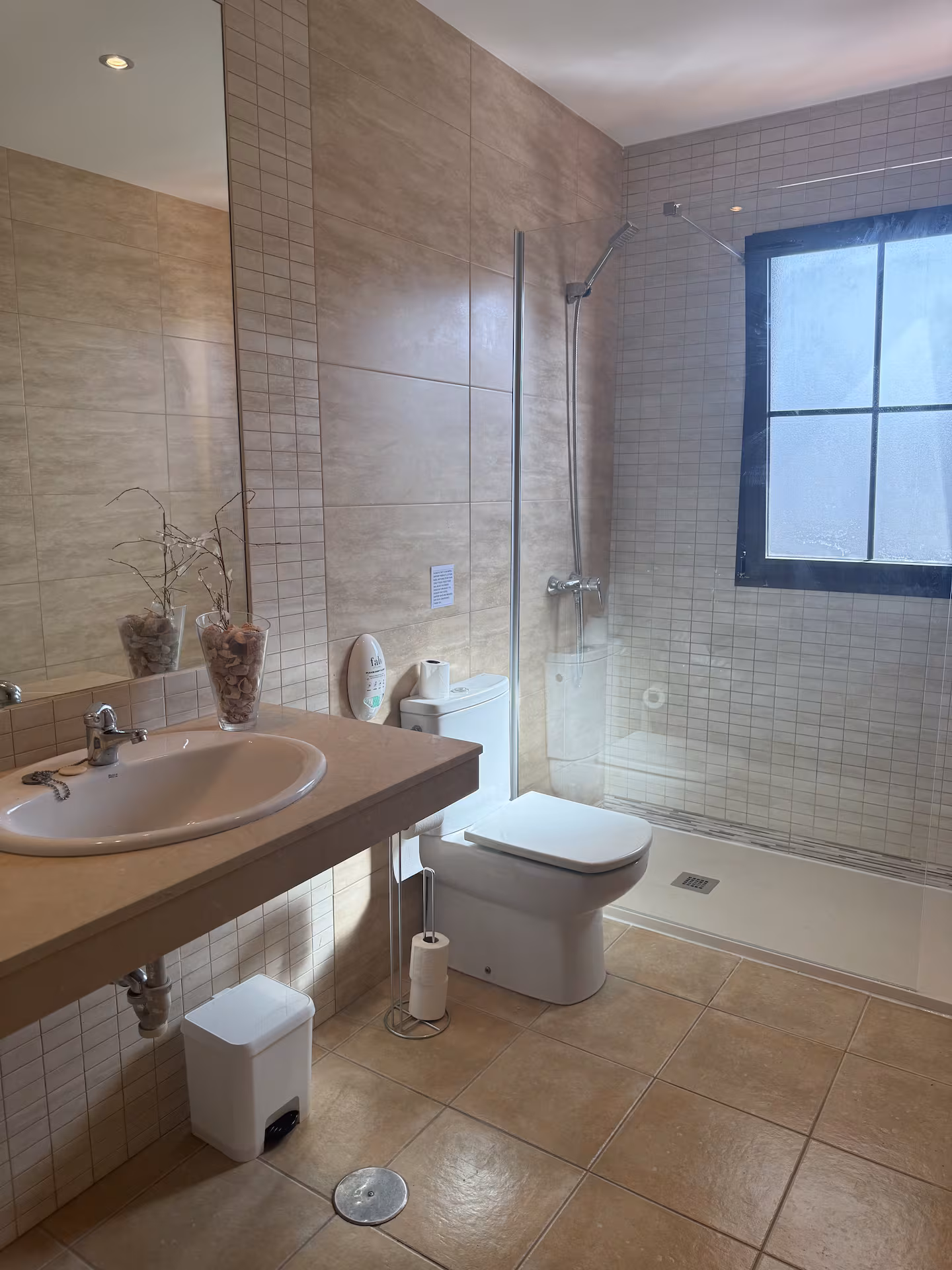 The villa has 4 seperately air-conditioned bedrooms and in the living area. 2 bathrooms, One of these bathrooms is an En suite to the master bedroom.